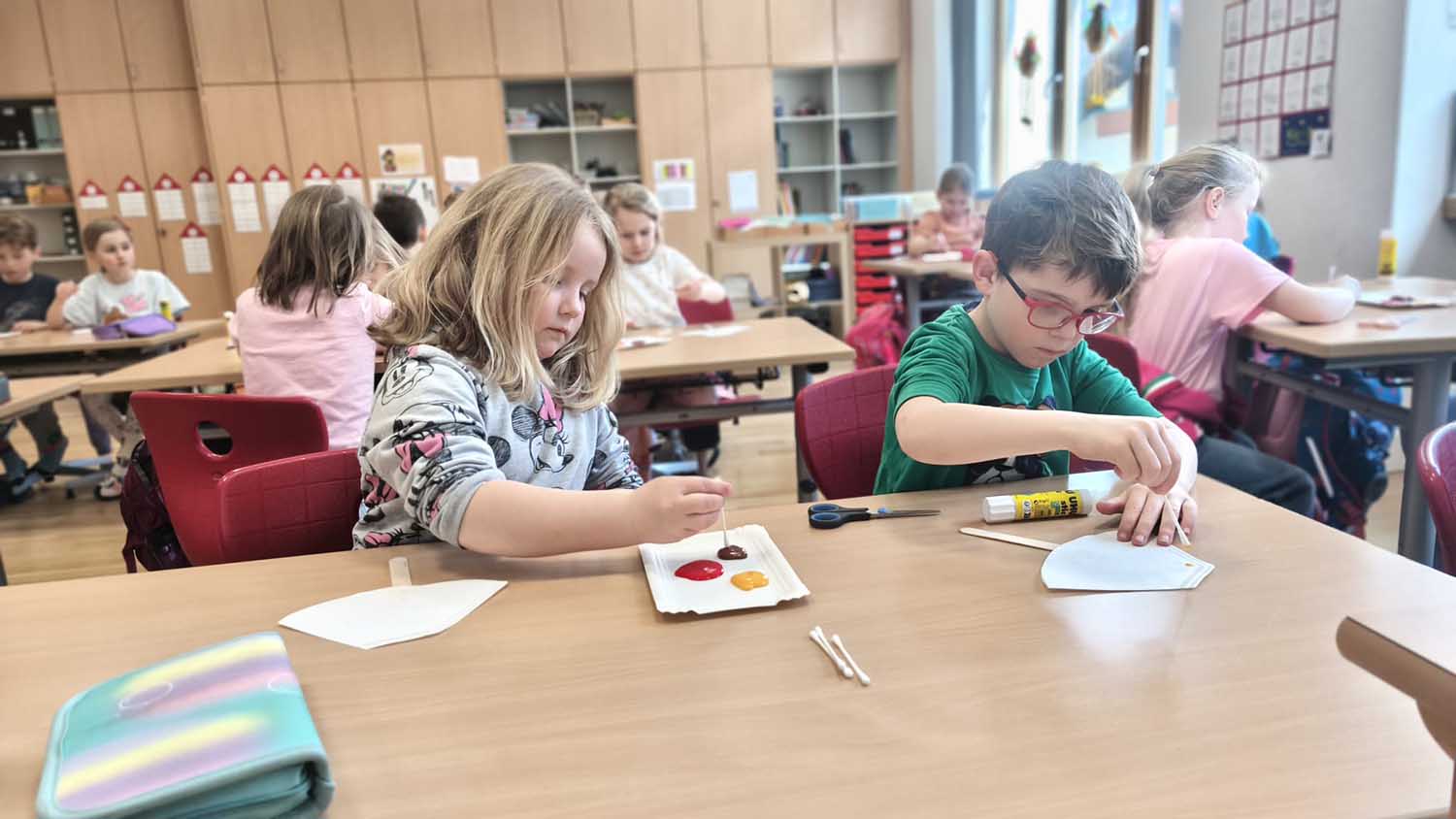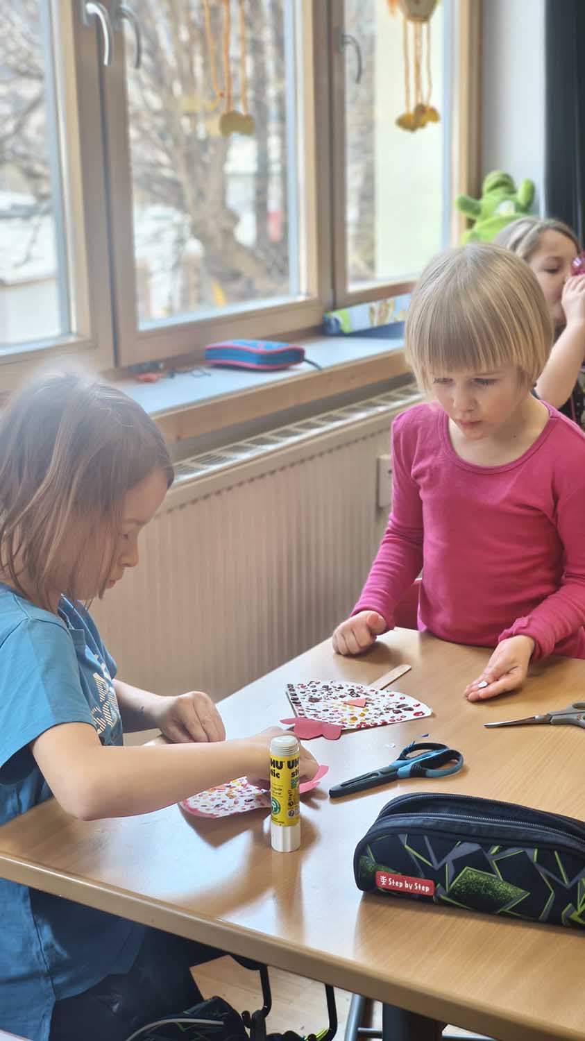 Am 10. März 2026 besuchten uns die Schulanfänger*innen der Kindergartengruppe Tauernzwerge aus Mallnitz. Gemeinsam mit den Volksschulkindern der 1. und 2. Klasse arbeiteten sie an verschiedenen Stationen zum Buchstaben SCH. Außerdem bastelten alle gemeinsam zum Thema Ostern.