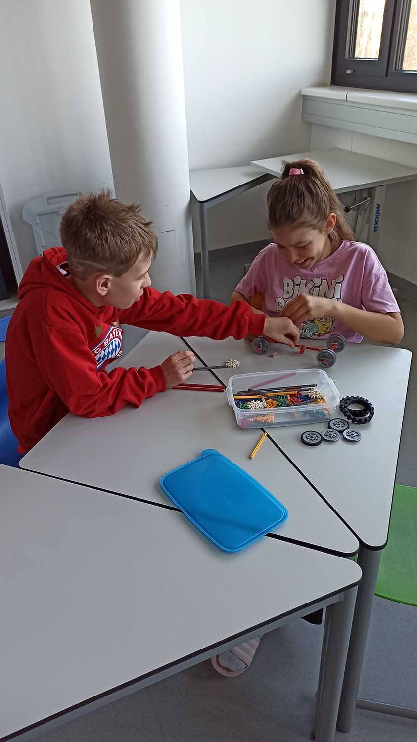 Anschließend fuhren wir in den Lakeside Science & Technology Park, wo wir Fahrzeuge bauten, die wir im Wettbewerb ausprobierten: Welches Fahrzeug fuhr dabei am weitesten?