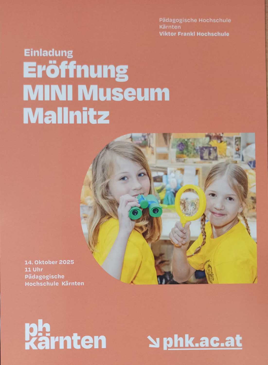 Das MINI-Museum Mallnitz wurde am 14. Oktober 2025 an der Pädagogischen Hochschule Kärnten in Klagenfurt feierlich eröffnet. Die Sonderausstellung, die Entdeckungen von uns Kindern aus der Nationalpark-Region Hohe Tauern zeigt, ist bis zum 27. Februar 2026 zu sehen.