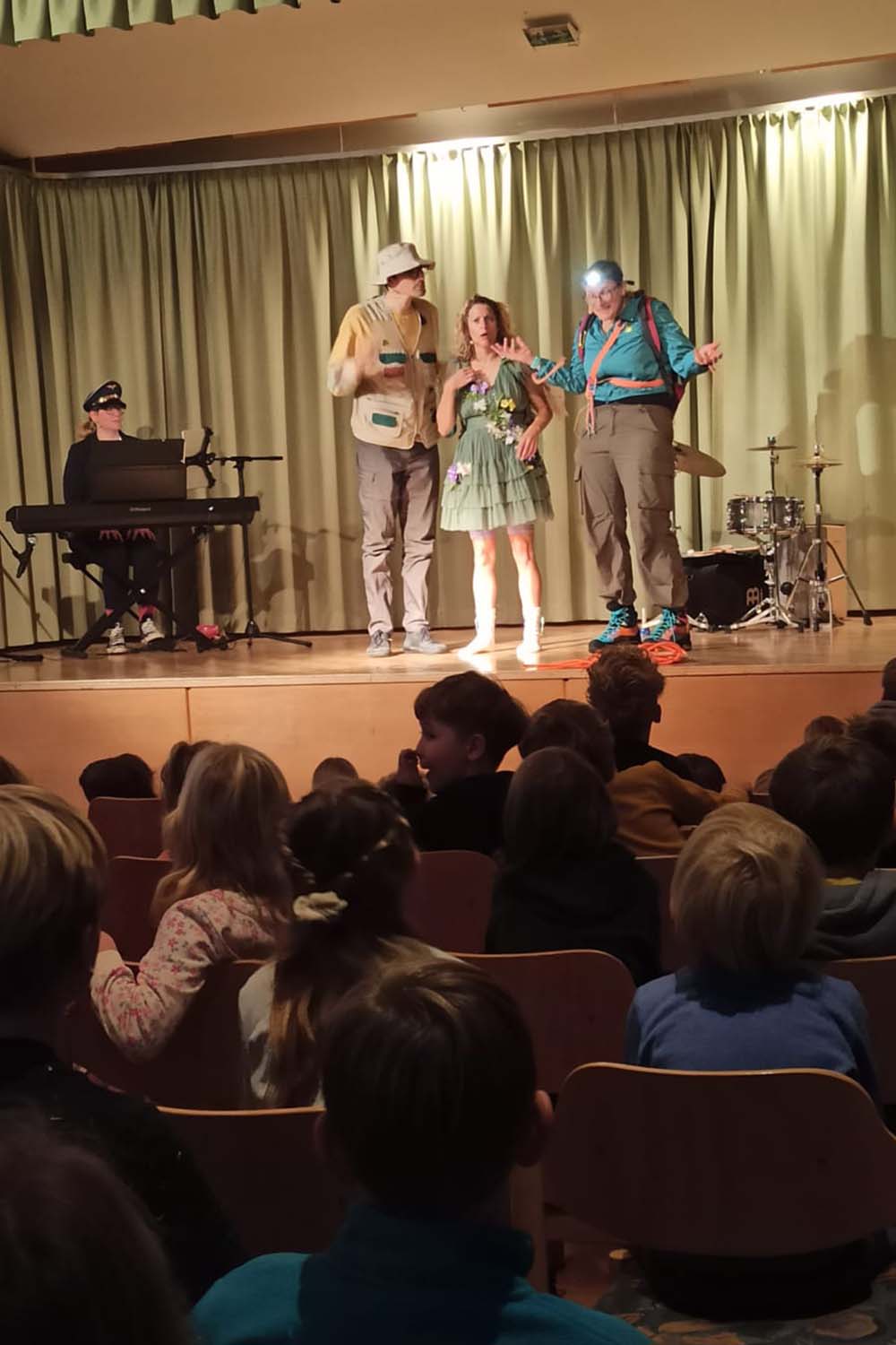 Mit der Bergfee DoReMi ging es hoch hinaus. Mit in ihrem Gepäck hatte sie ihre Tastenpilotin mit ihrem fliegenden Klavier, die energiegeladene Bergführerin Navi mit ihrer hüpfenden Klarinette und den Klimaforscher Kurtl.